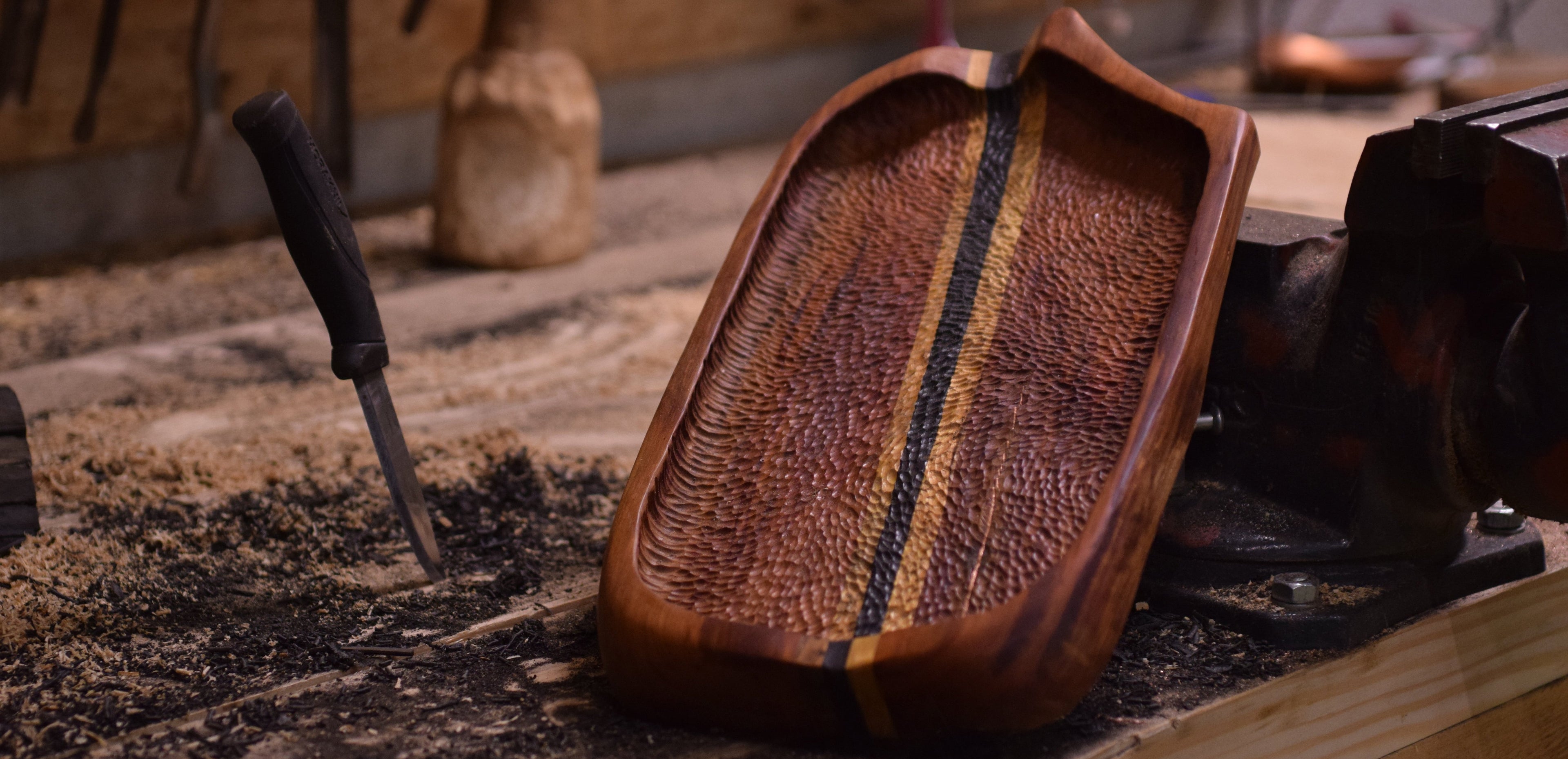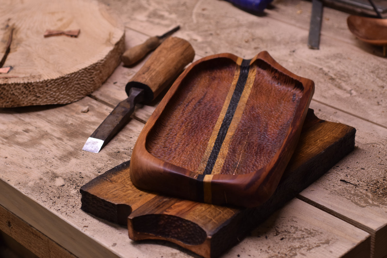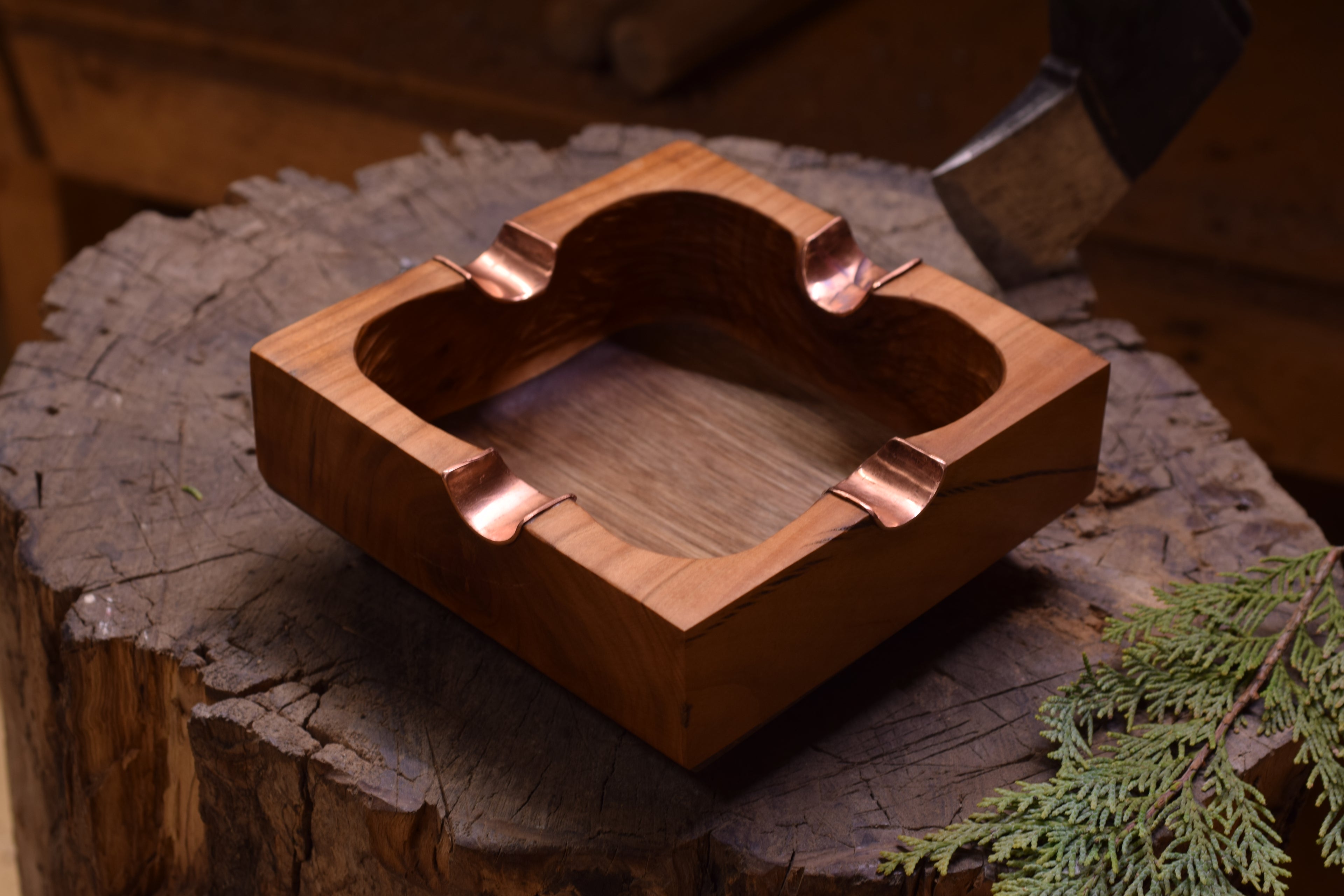 Drvene zdjele u prirodnim bojama drva s bakrenim detaljima i teksturama -...