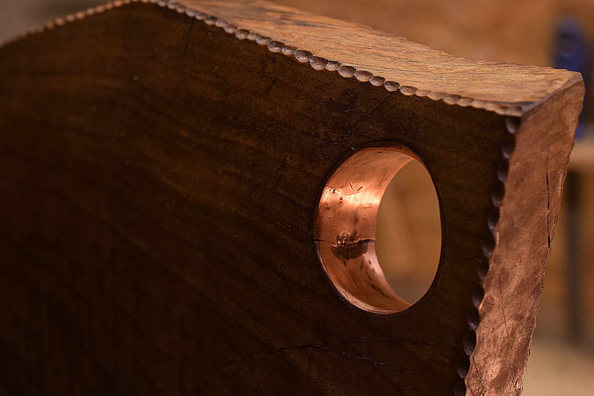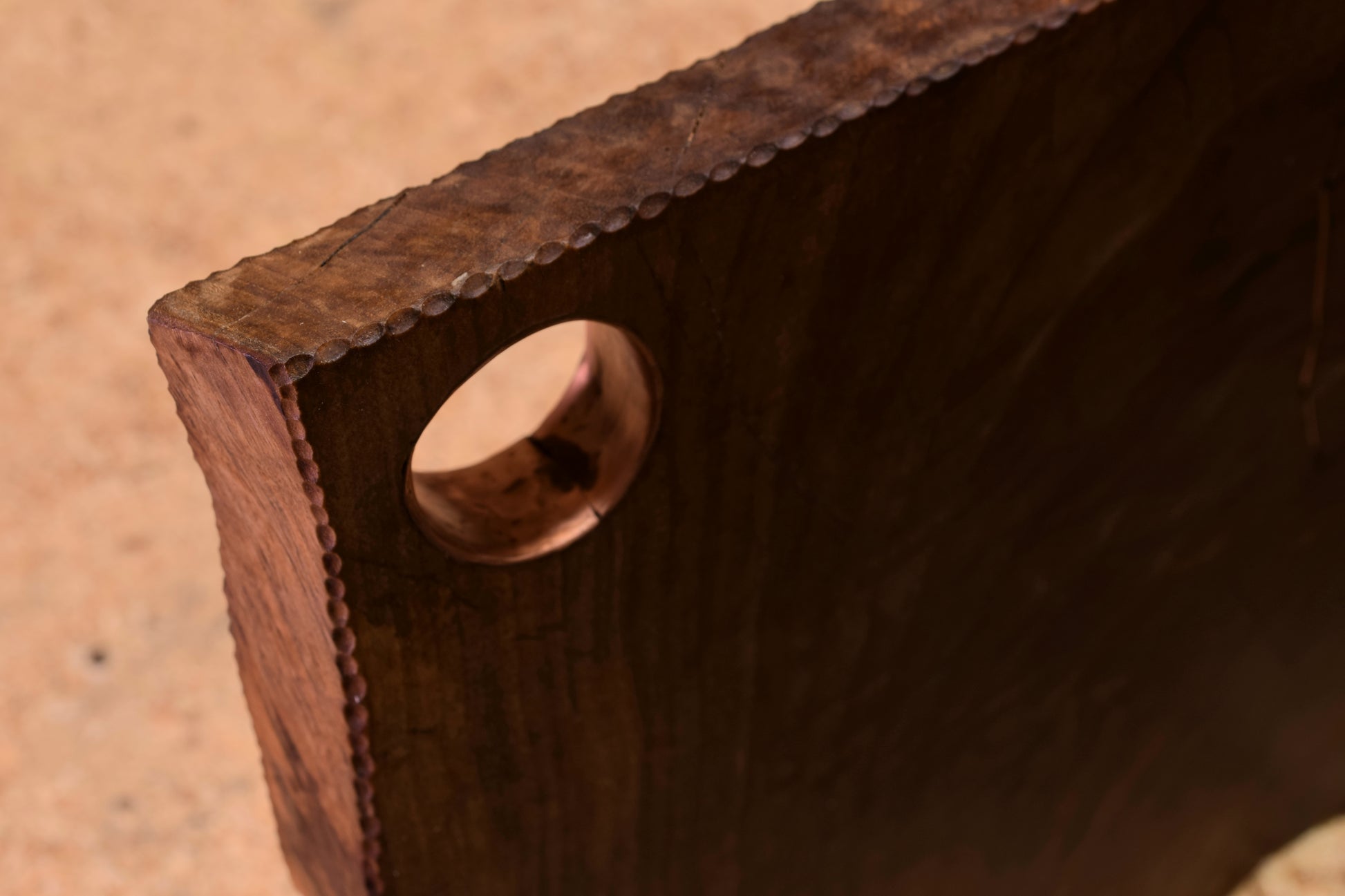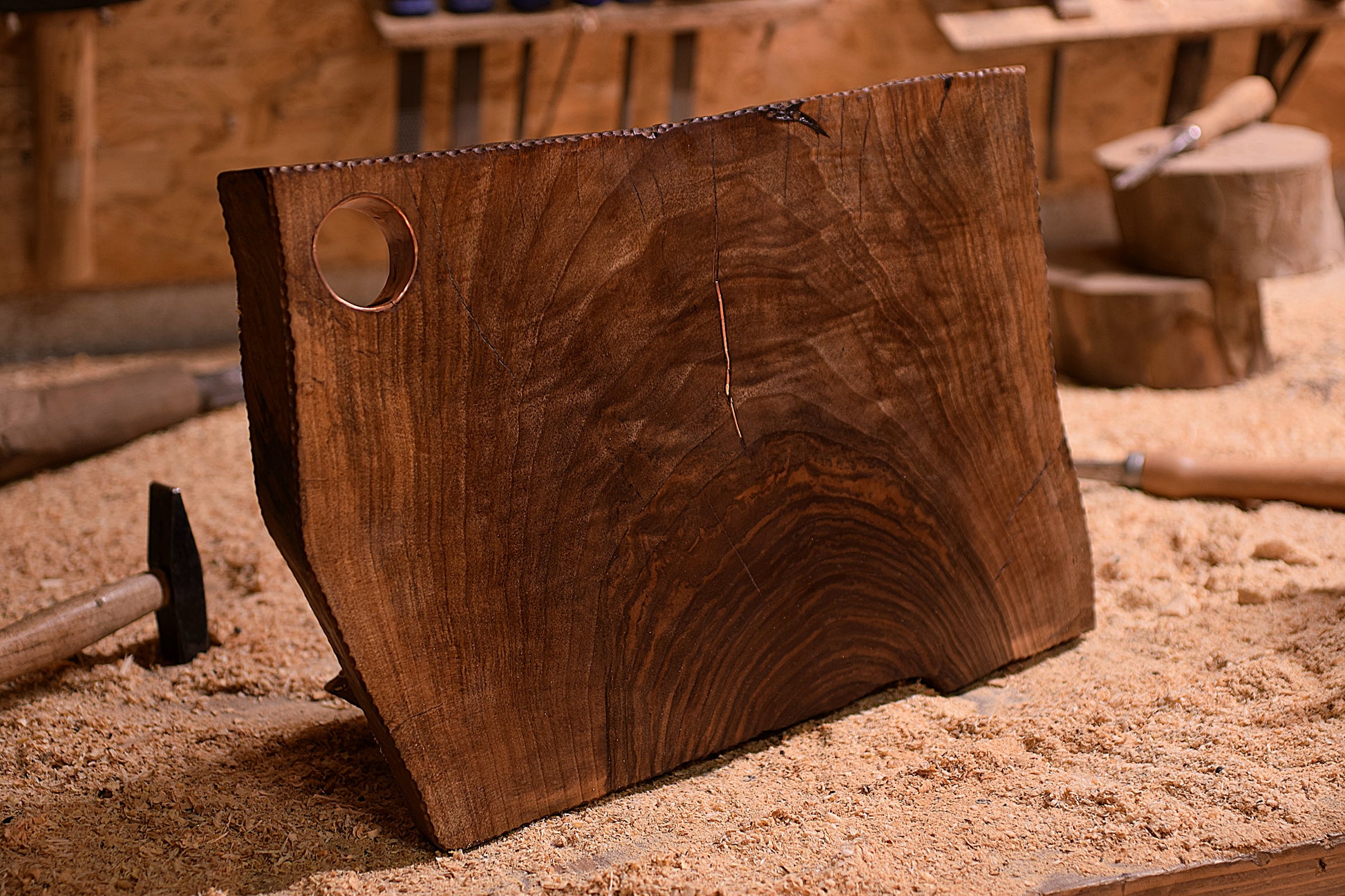 Prirodni tok godova i topli tonovi i ručna obrada čine svaki komad jedinstvenim poput bakrenog prstena i teksture na rubovima.