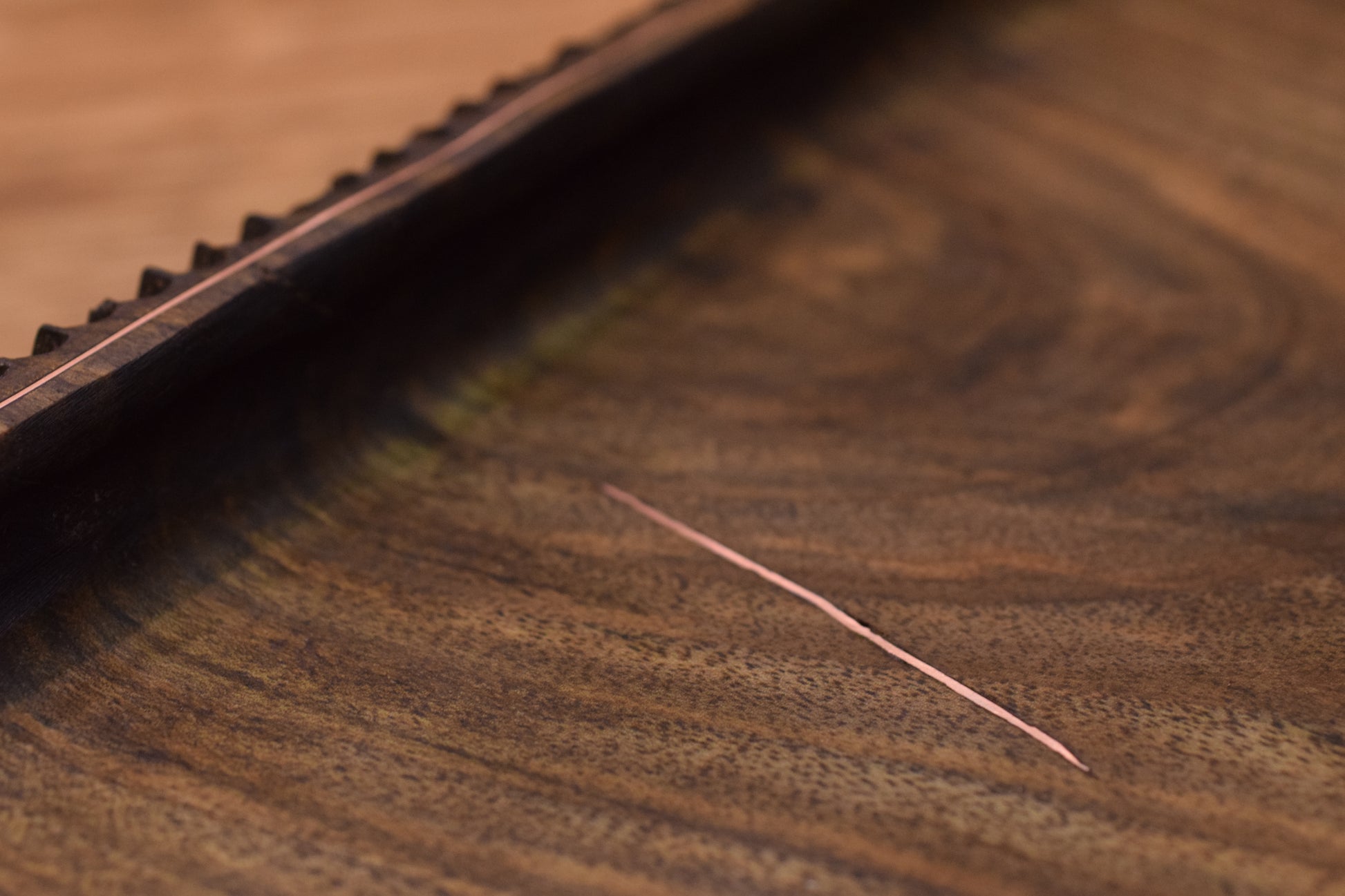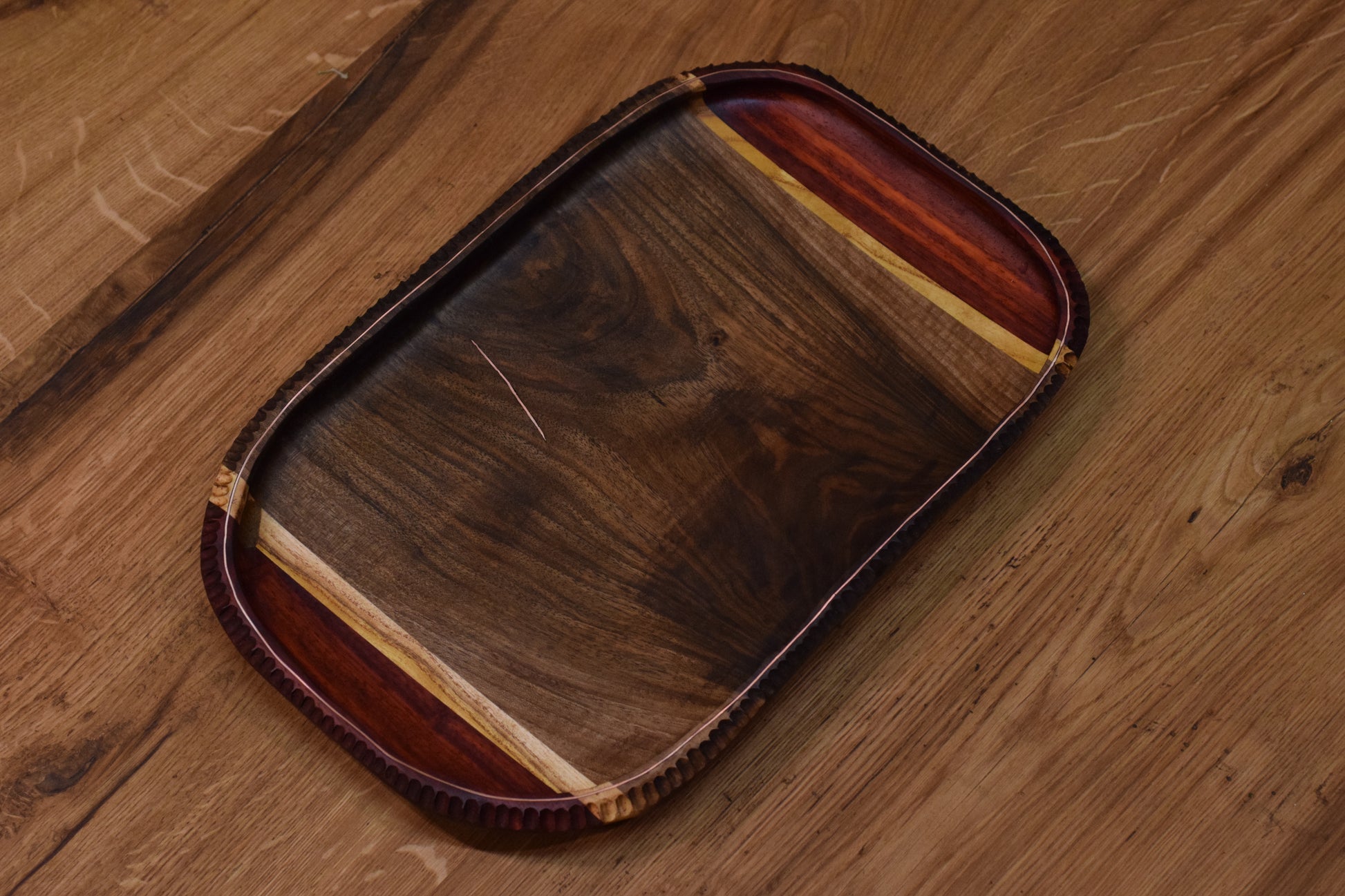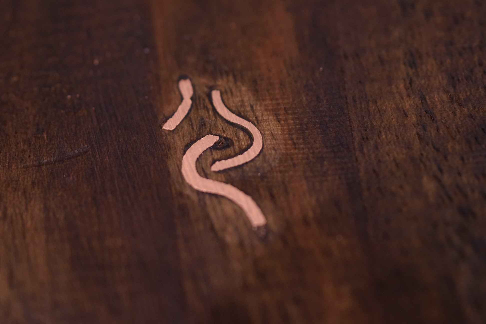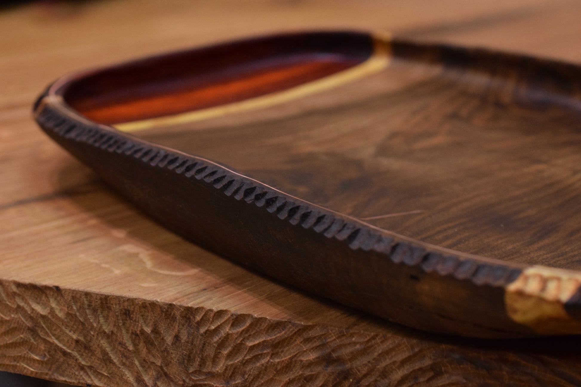 Ručno izrađena drvena posuda izrađena kombinacijom raznog drveta. Poseban izgled daje joj daje način izrade iz više komada drveta, čija priroda boja i raznolikost tonova, uz različite teksture i karakteri povrđine i bakreni detalje daju joj unikatan izgled