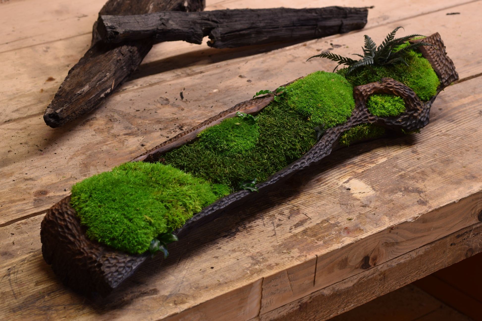 Unique decorative bowls made from exotic bog oak, carved and filled with stabilized moss that stays forever fresh and green. It does not decay, fade, or require maintenance – simply eternal pieces of nature in your interior. A perfect blend of the warmth of wood and timeless natural beauty, ideal for modern home or office design.