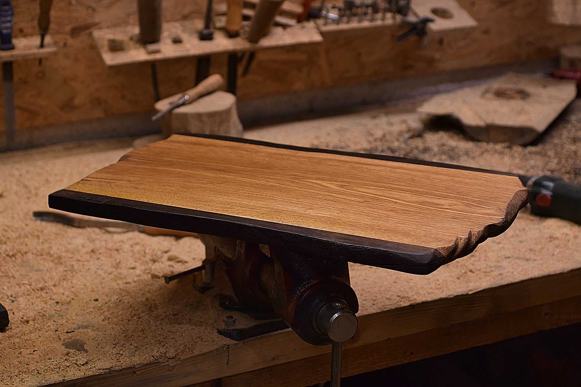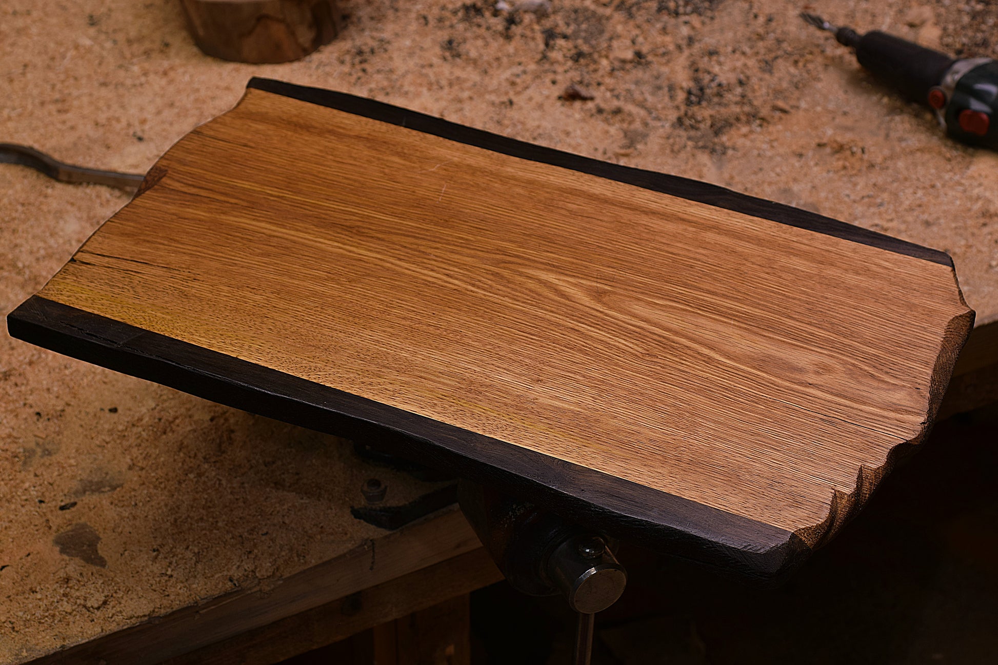 Ručno izrađena daska za rezanje izrađena kombinacijom hrasta i močvarnog hrasta.