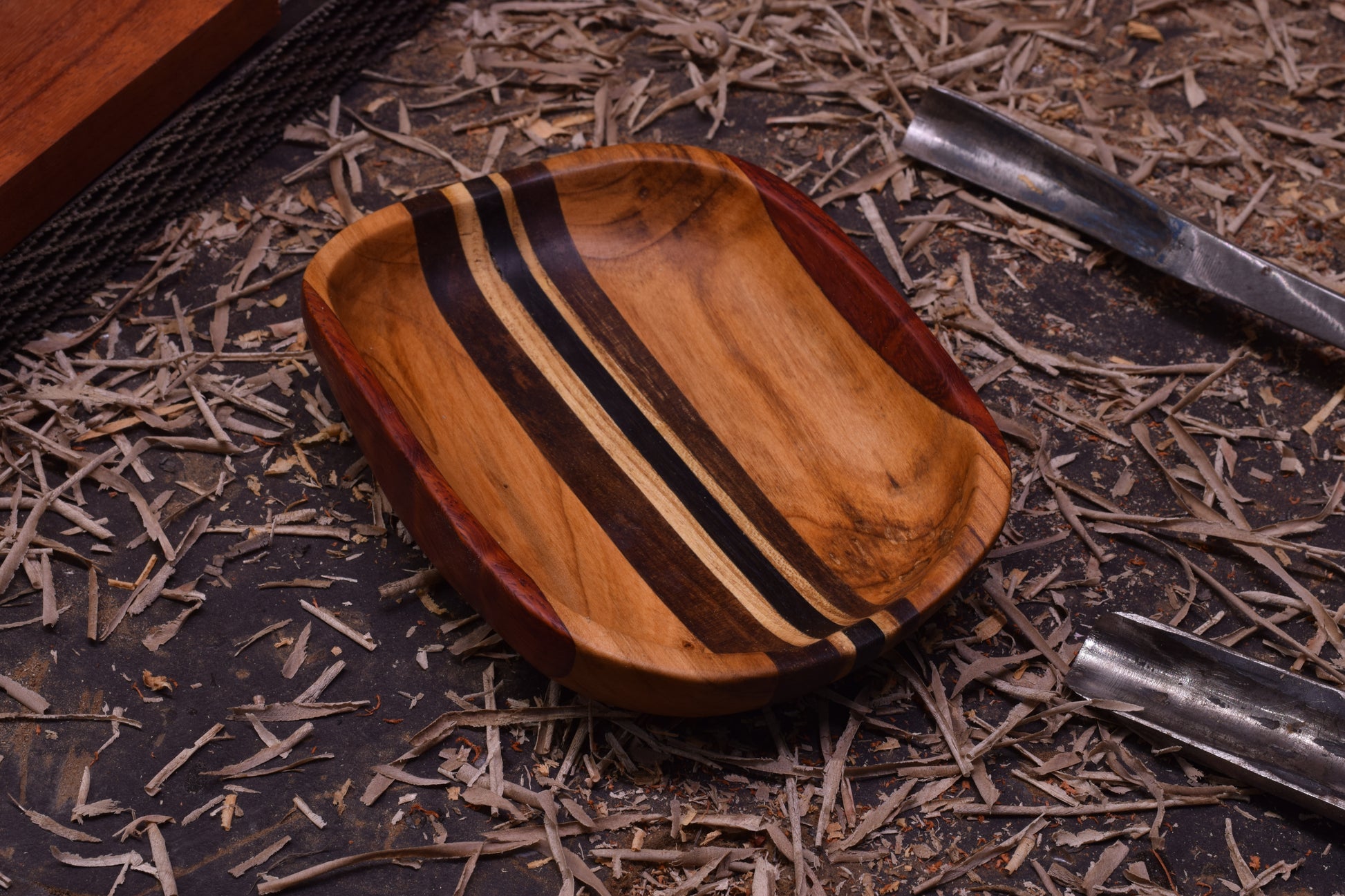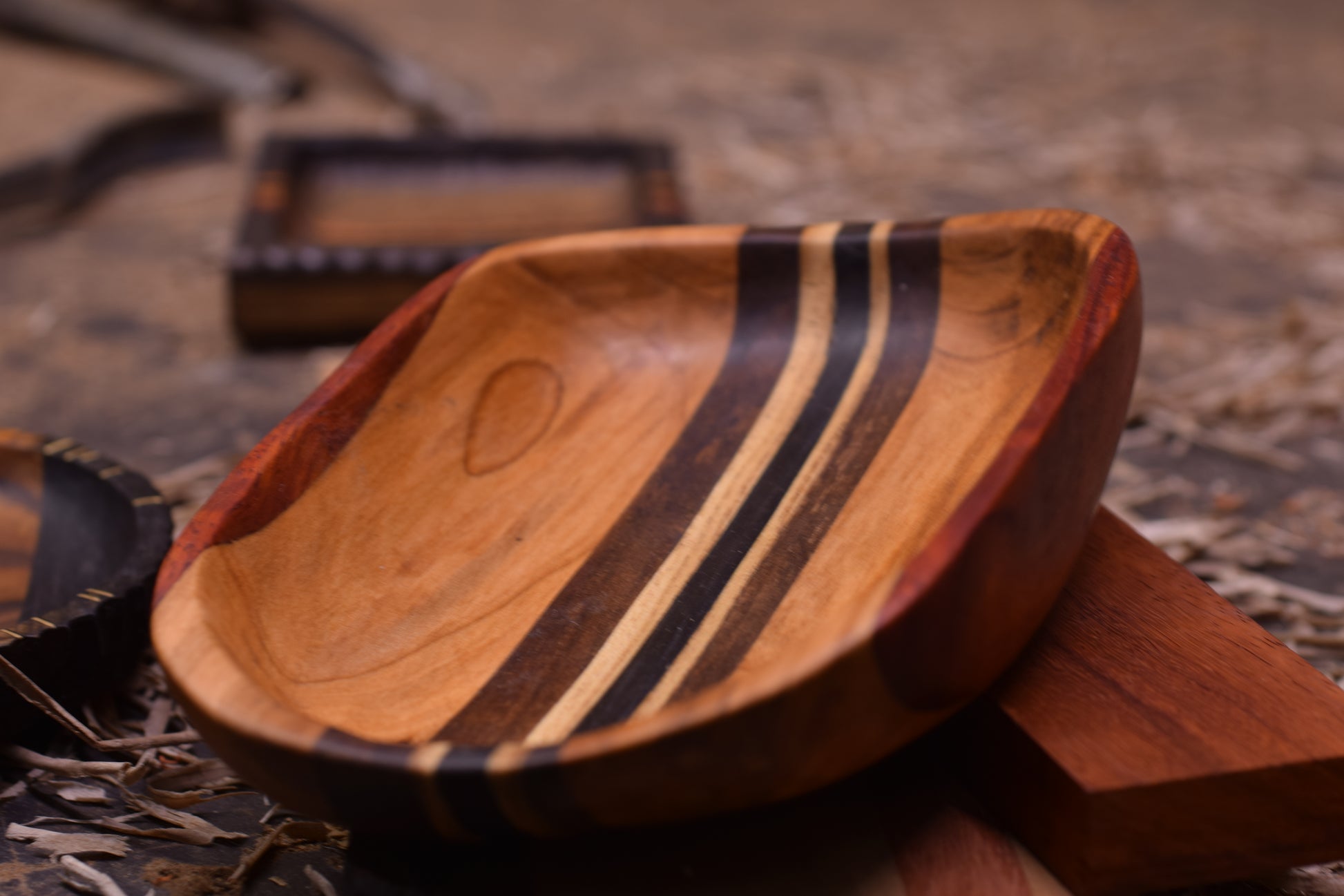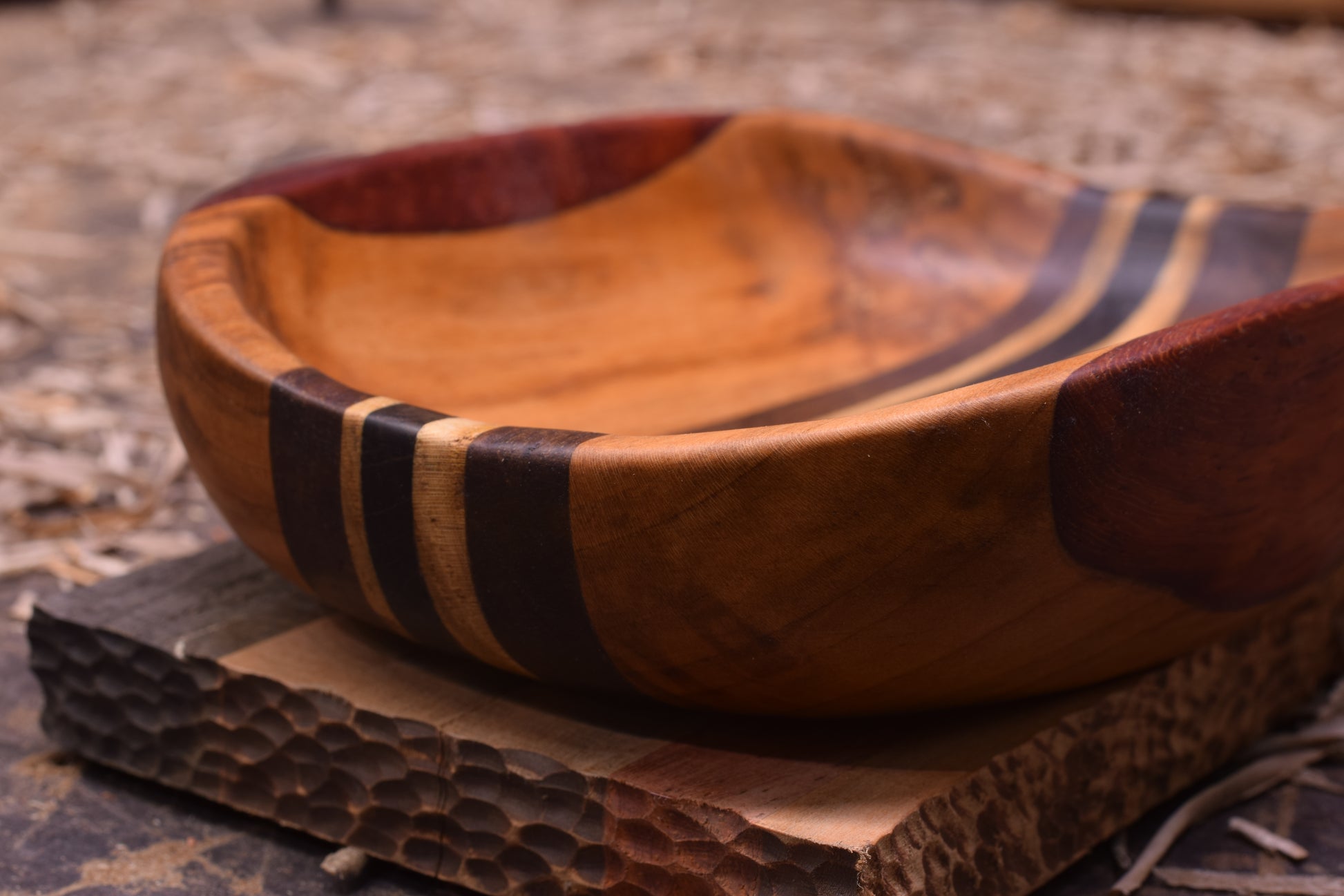 Ručno izrađena drvena posuda izrađena kombinacijom raznog drveta. Poseban izgled daje joj daje način izrade iz više komada drveta, čija priroda boja i raznolikost tonova, uz različite teksture i karakteri površine.